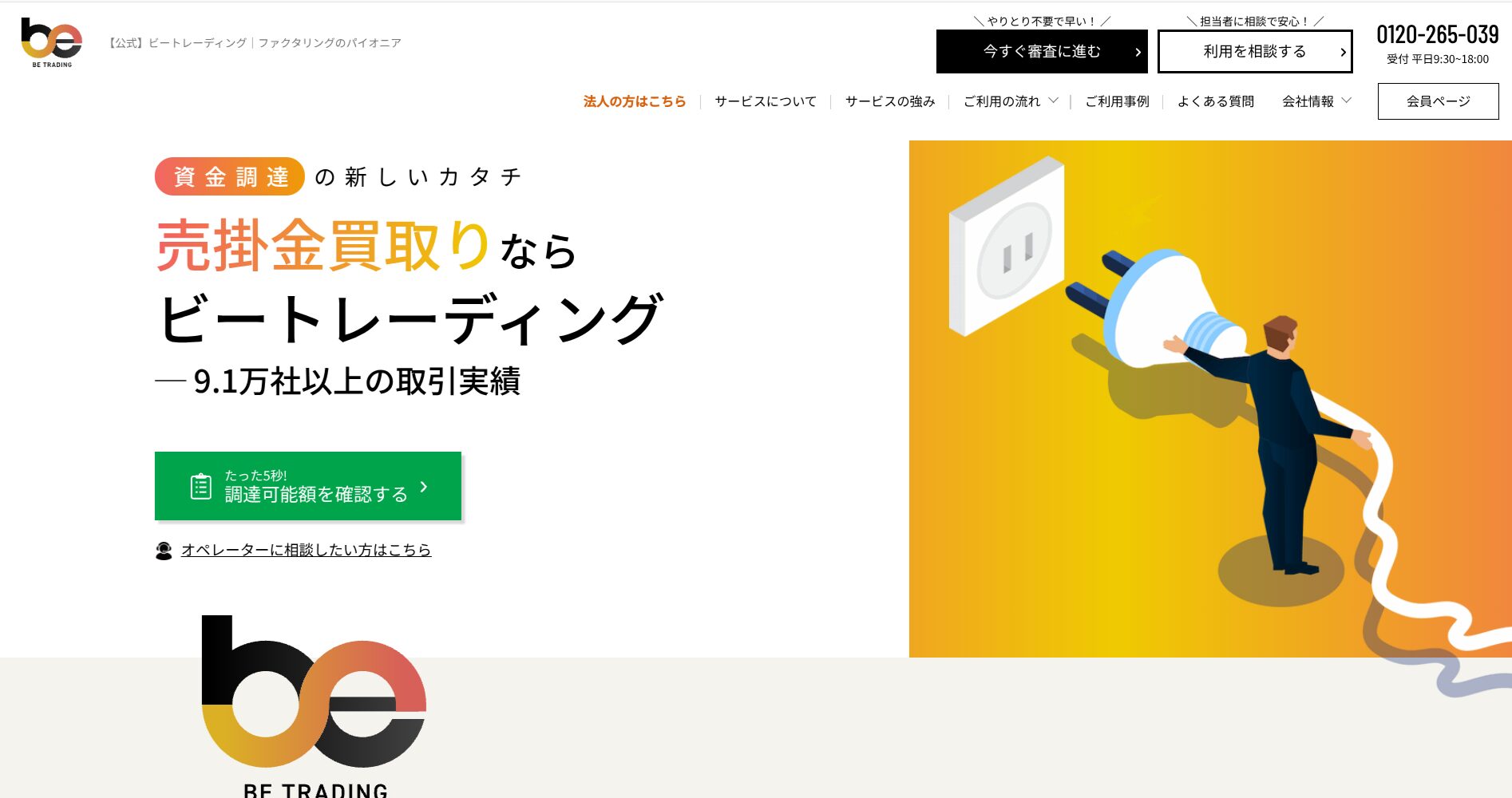 ビートレーディングは、2012年の設立以来、累計7.1万社以上の取引実績と累計買取金額1,550億円を誇るファクタリング業界のパイオニア的存在です。審査通過率が非常に高く、他社で買取不可とされた請求書も買い取れる可能性があるため、他社利用中で審査に不安を抱えている方にも選ばれています。