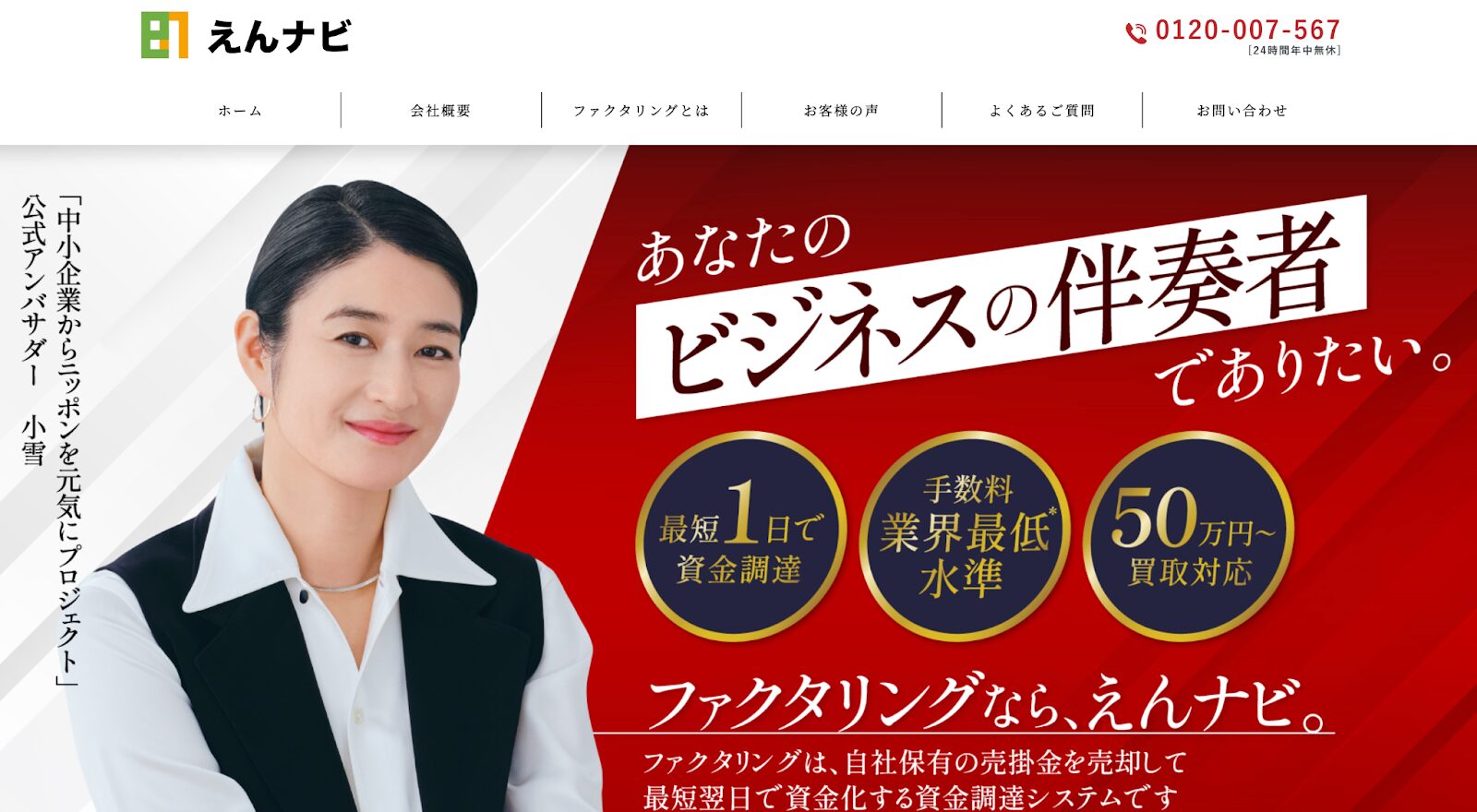 えんナビのファクタリングは、24時間365日いつでもスタッフが対応し、土日祝日でも最短1日で資金調達が可能です。急な資金ショートや事業拡大時など、迅速な現金化を求める経営者に適しています。