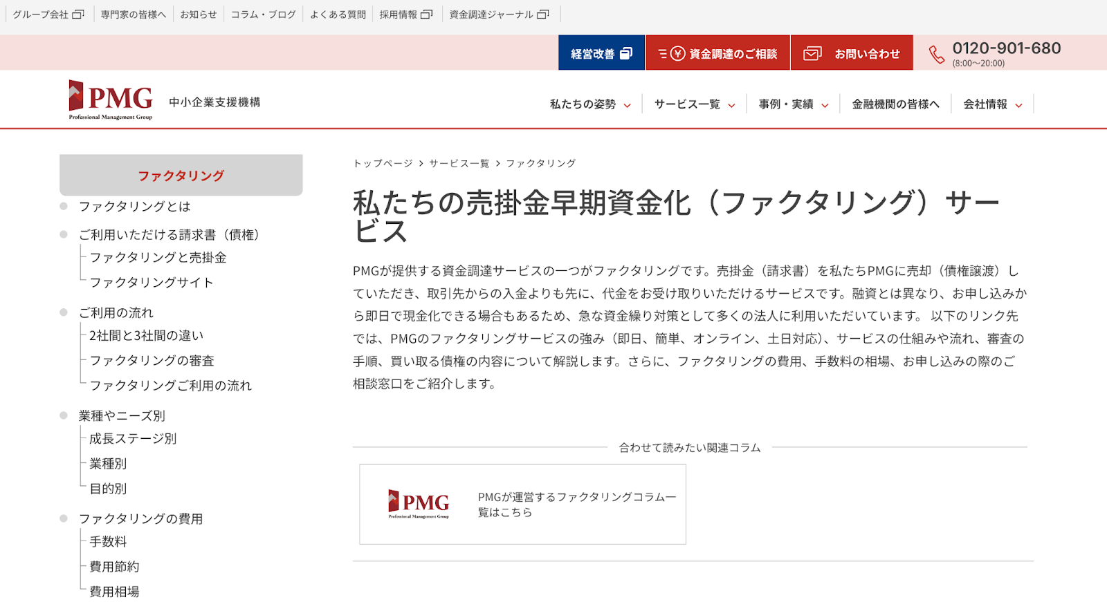 PMGは、売掛債権を迅速かつ柔軟に買い取るファクタリングサービスで、年間取扱件数10,000件超の実績を誇ります。建設業、運送業、製造業、IT業、医療法人など多様な業種に対応し、中小企業からベンチャーまで幅広いニーズに応えます。