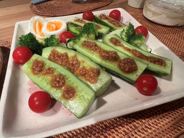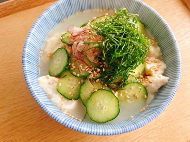 ふじた農場より届いたキュウリを使った冷汁。この季節にぴったりでおいしそうです。