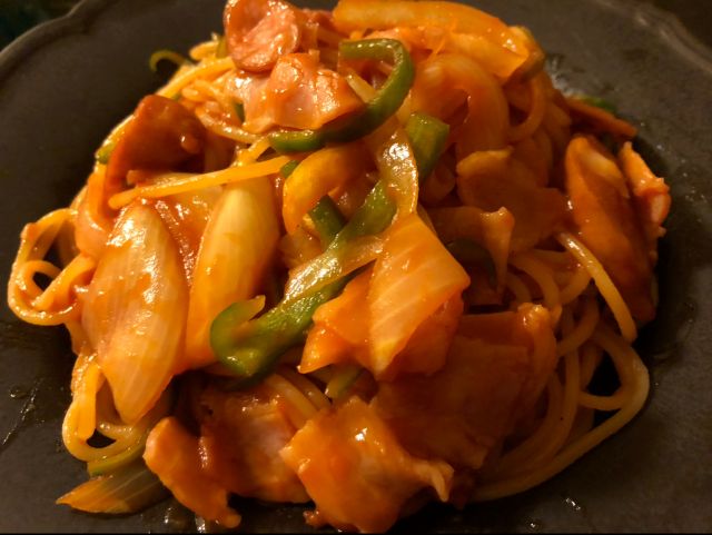 ふじた農場より届いた玉ねぎ、ピーマンを使ったナポリタン。