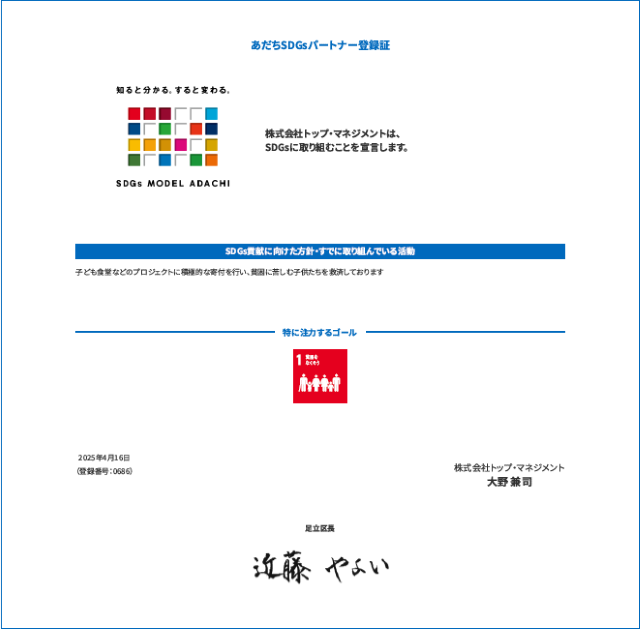 株式会社トップ・マネジメントは足立区域のSDGsを推進しています。