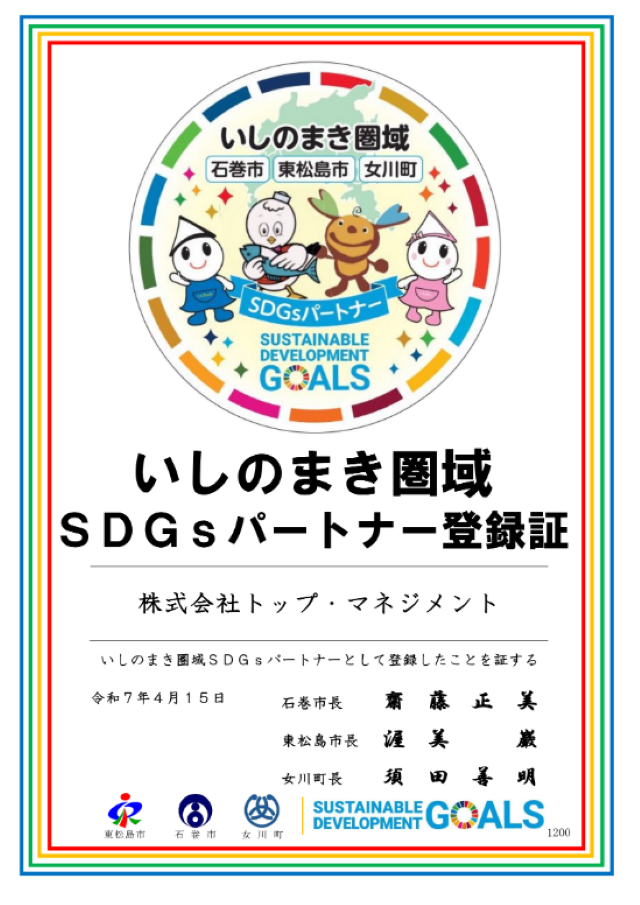 株式会社トップ・マネジメントは石巻市域のSDGsを推進しています。