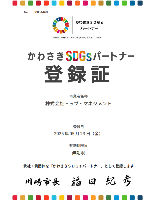 株式会社トップ・マネジメントは川崎市域のSDGsを推進しています。